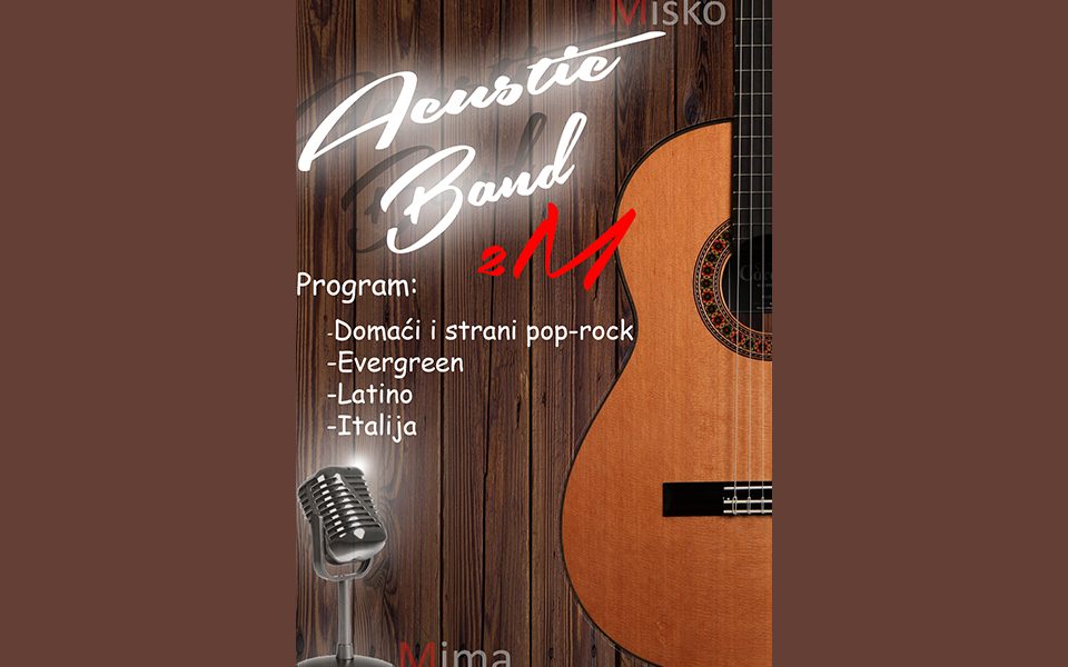 30/09/2020 30.09.2M Acustic Band by Ivancica in SVIRKE 2M Acustic Band večeras sa vama! Slušamo domaći i strani Pop – rock, Evergreen, Latino,… Više